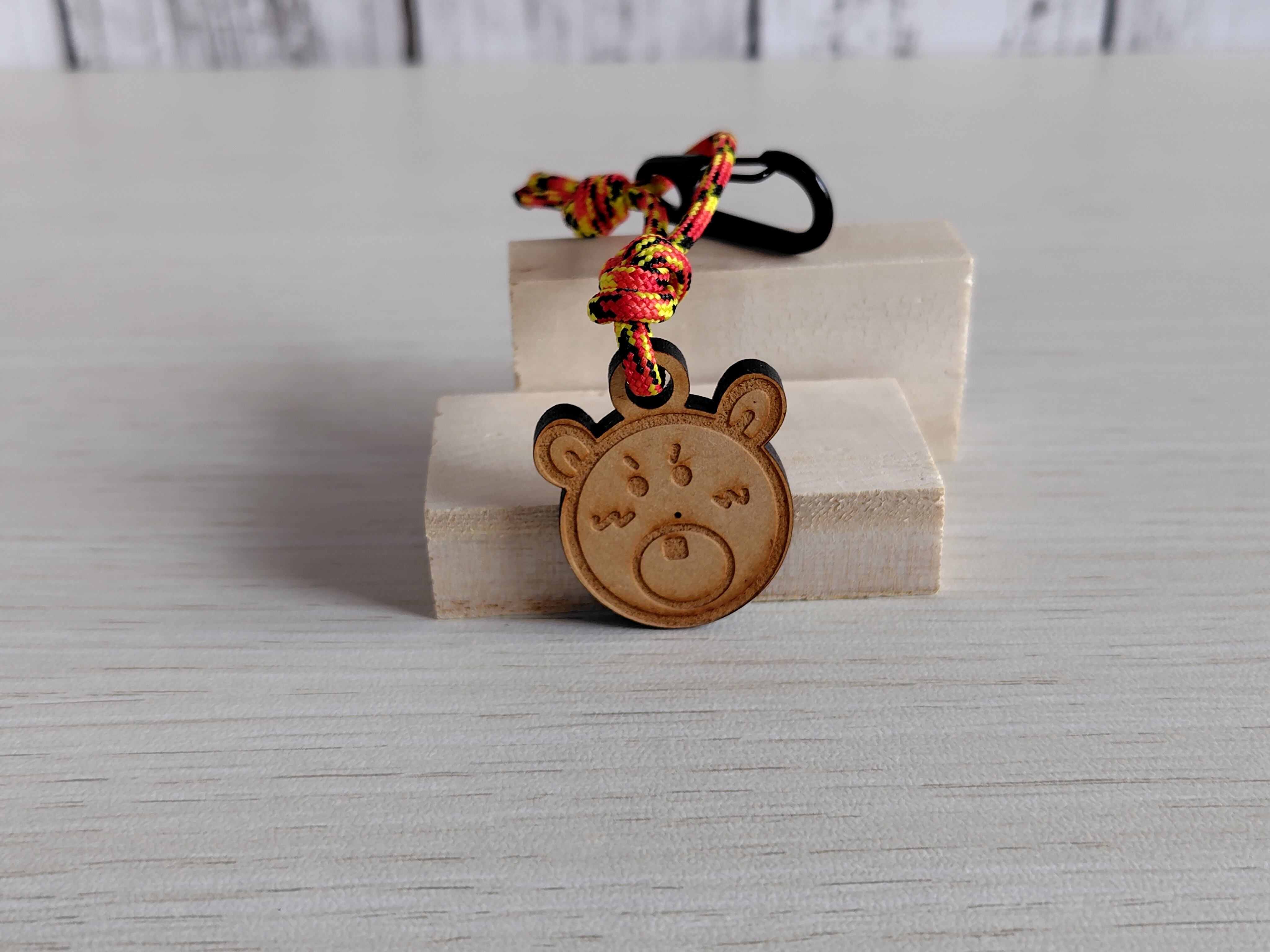 温もりを感じる木で作ったオリジナルデザインのキーホルダーです。